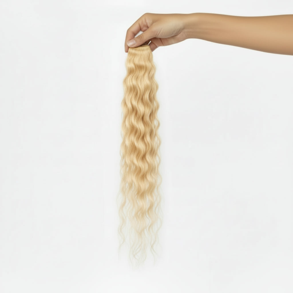 DISCLAIMER - FRIZZ IS SOMETIMES UNCONTROLLABLE WITH CURLY HAIR - REFUNDS OR EXCHANGES WILL NOT BE GIVEN FOR THIS REASON. PATTERNS MAY VARY FROM ONE PACK TO ANOTHER - WE WILL NOT ACCEPT RETURNS ON HAIR IF CURL IS NOT IDENTICAL. SOME PACKS MAY BE TIGHTER OR LESS CURLIER THAN OTHERS!!!! Comes on 26" wide weft that can be cut to customize head width.